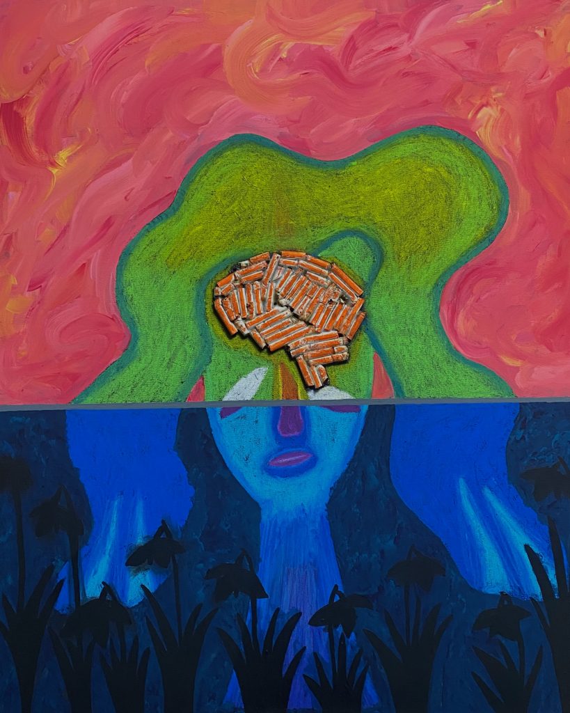 F20 ( 727x606mm ) — Canvas・Acryl・crayon・cigarette